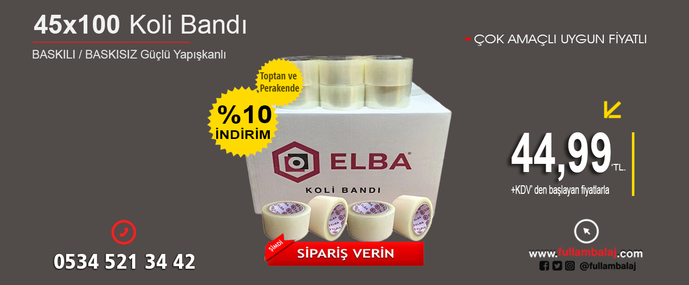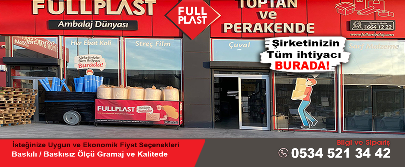 Ambalaj sektöründe kaliteli, dayanıklı ve ekonomik ürünlere ulaşmak isteyenler için Full Ambalaj, geniş ürün yelpazesi ve profesyonel hizmet anlayışıyla öne çıkan bir tedarikçidir. Online satış platformumuz fullambalaj.com, bireysel ve kurumsal müşteriler için ihtiyaç duyulan tüm ambalaj malzemelerini, hızlı teslimat ve uygun fiyat avantajıyla sunar.